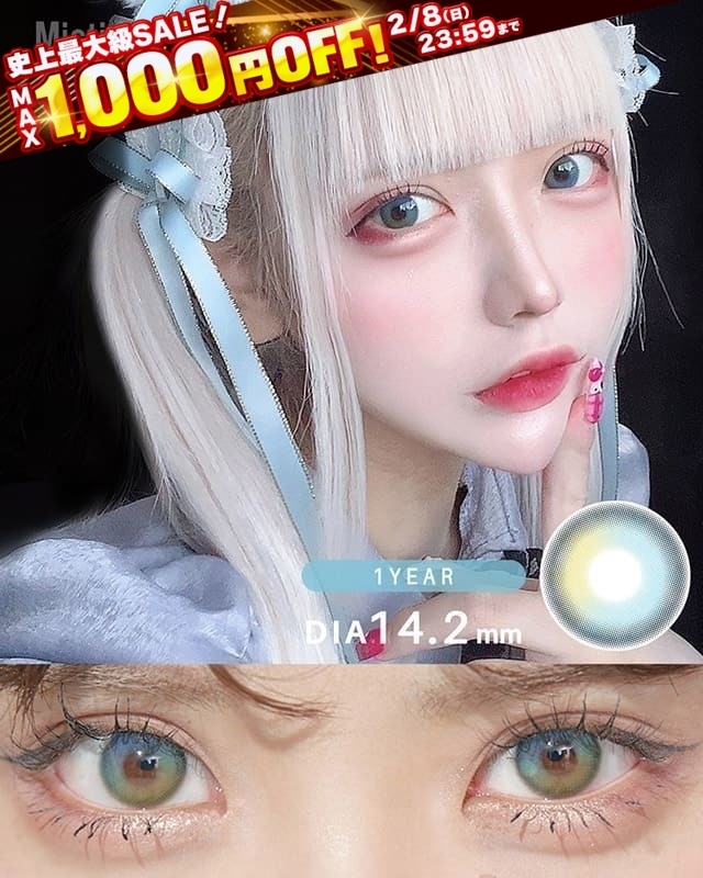 爽やかなライトブルーにライムイエローのアクセントが瞳に馴染み自然なハーフアイに。存在感のあるカラーで即おしゃれな雰囲気に。