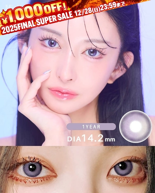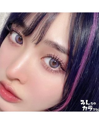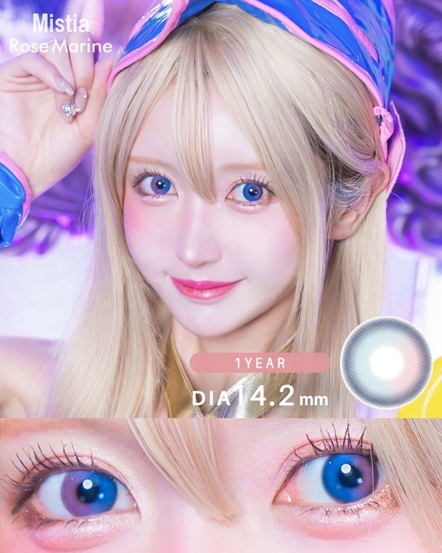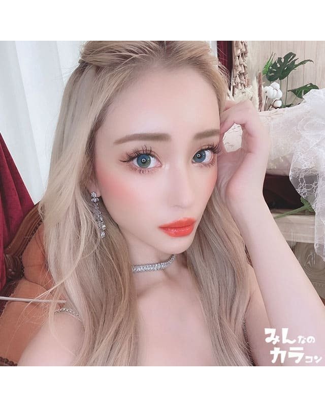 澄んだマリンブルーに優しげで淡いコーラルピンクの2次元越えカラコン。透明感のある綺麗な発色で写真映え抜群の瞳に。