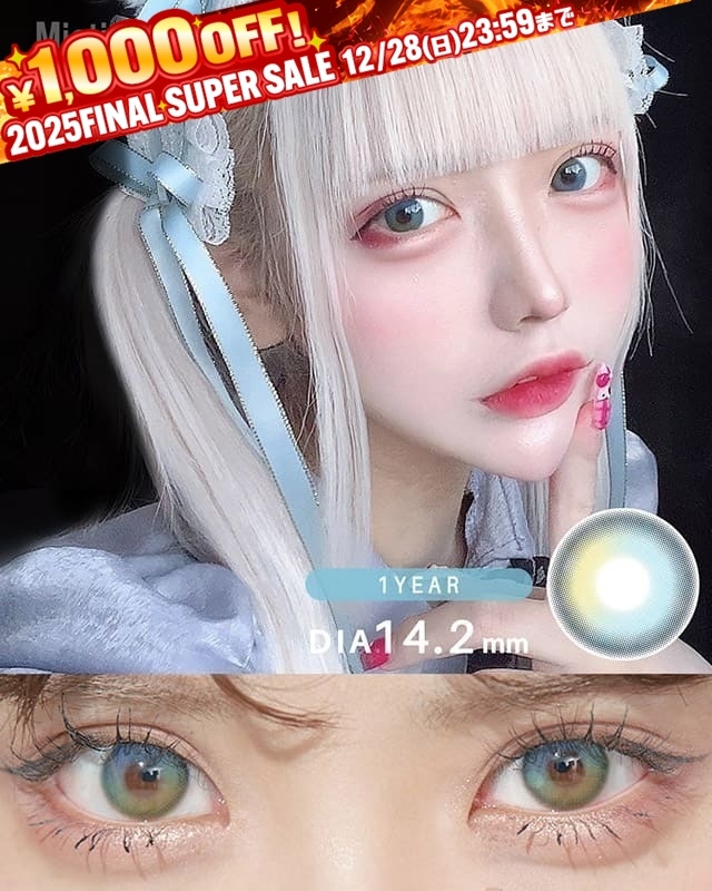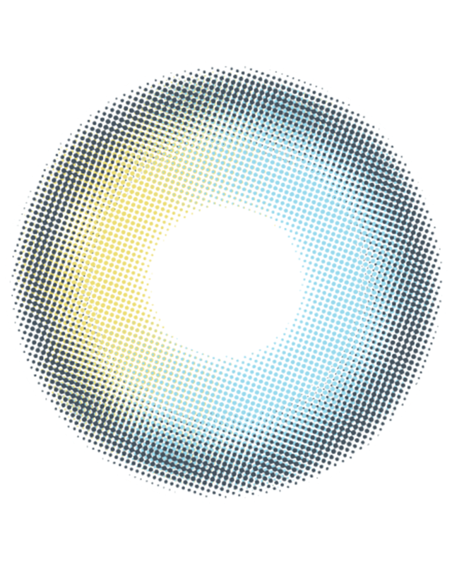 爽やかなライトブルーにライムイエローのアクセントが瞳に馴染み自然なハーフアイに。存在感のあるカラーで即おしゃれな雰囲気に。