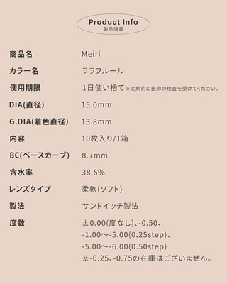 ワンデーメイリ ララフルール[1day Meiri] DIA15.0mm【10枚入り】