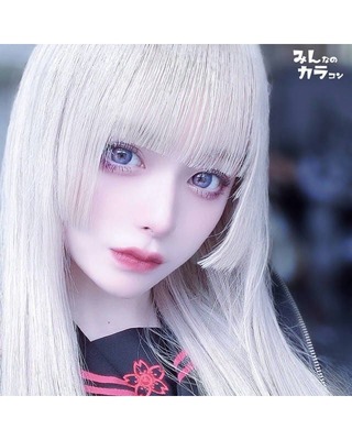 澄んだマリンブルーに優しげで淡いコーラルピンクの2次元越えカラコン。透明感のある綺麗な発色で写真映え抜群の瞳に。