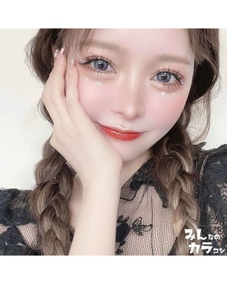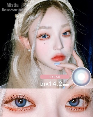 澄んだマリンブルーに優しげで淡いコーラルピンクの2次元越えカラコン。透明感のある綺麗な発色で写真映え抜群の瞳に。